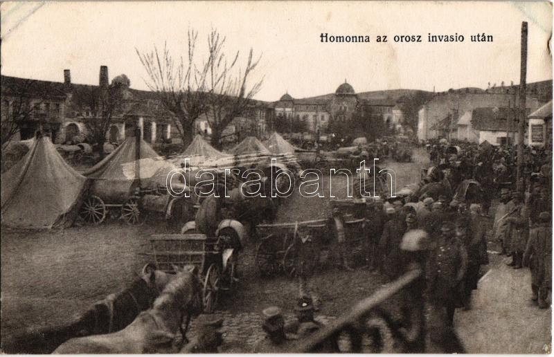 Homonna, Humenné; Fő tér az orosz invázió után, felállított katonai tá... https://www.darabanth.com/en/344-Online-auction/344.0/Postcards/Slovakia~1500006/Homonna-Humenne-Fo-ter-az-orosz-invazio-utan-felallitott-katonai-tabor-Waller-Mor-kiad~II1953561