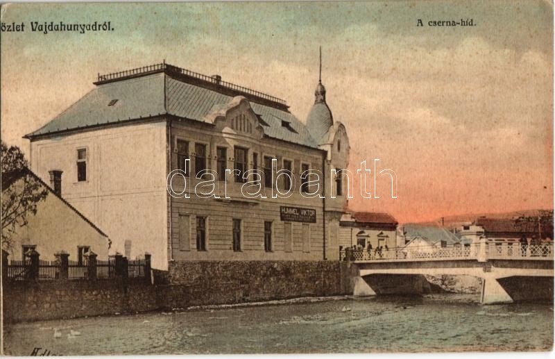 Vajdahunyad, Hunedoara; Cserna híd, Hummel Viktor üzlete. Adler fényir...