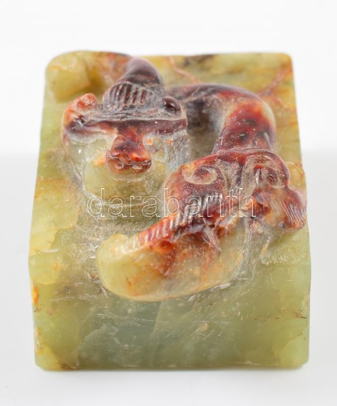 Kínai jáde kő pecsétnyomó, faragott, szalamandra figurával / Chinese jade seal maker.Salamander 4x2,5 cm