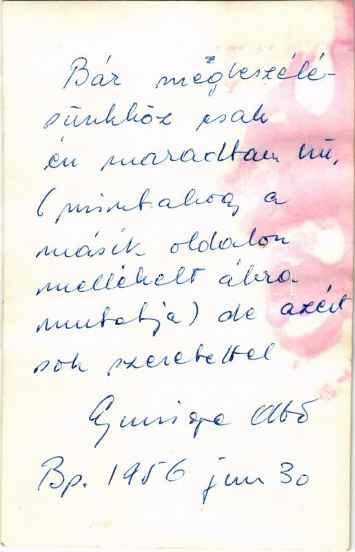 Gyuricza Ottó színész aláírása őt ábrázoló fotó hátulján