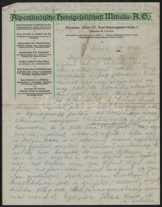 1921-1940 5 db fejléces szállodai levélpapír (Grand Hotel Korona, Hotel Regina, Hotel Imperial Wien, stb.)