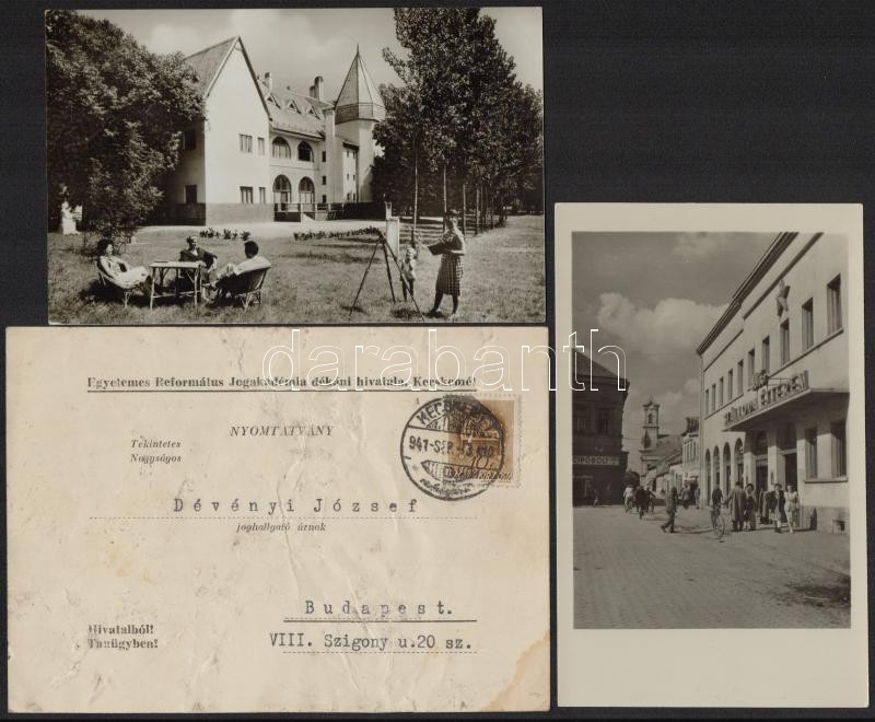 cca 1900-1960 Vegyes kecskeméti képeslapok és dokumentumok, 5 db