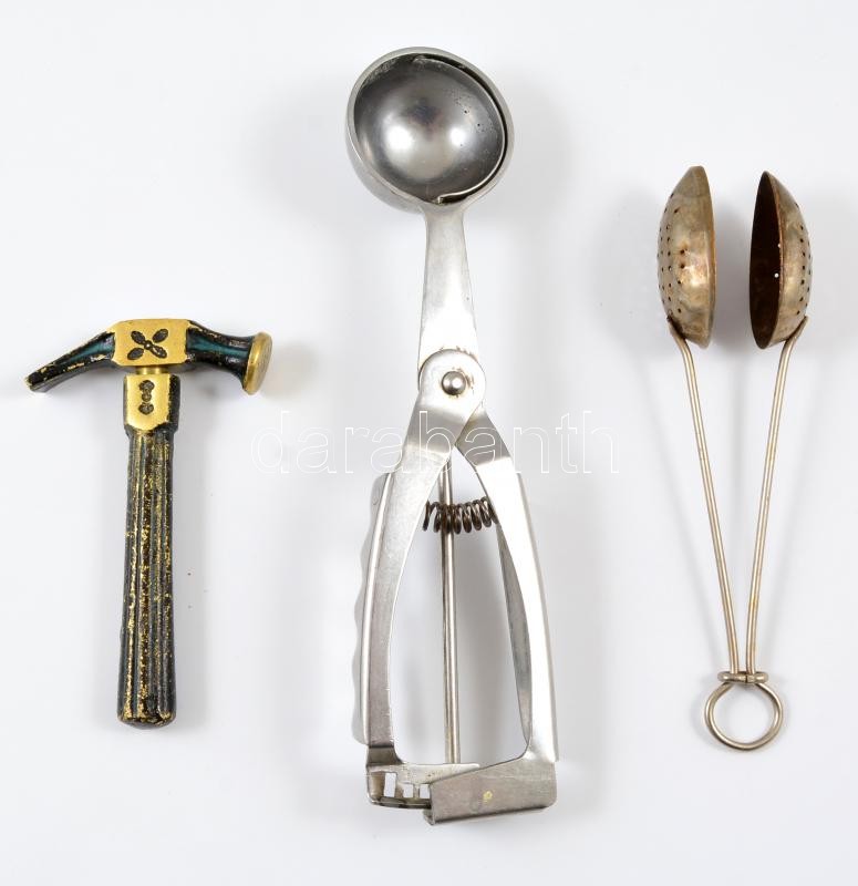 Régi konyhai eszközök, fagyis kanál, teaszűrő, stb., 3 db