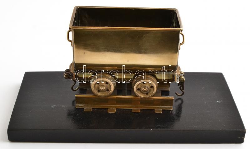 Sárgaréz bányászcsille makett, 11×5×10 cm, fa talapzaton