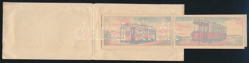 Description: cca 1940 A lengyelországi Wroclaw (Breslau) városában az ifjúság számára kiadott matrica-leporello a városi közlekedési vállalat járműveiről (lóvasút, villamos, autóbusz)