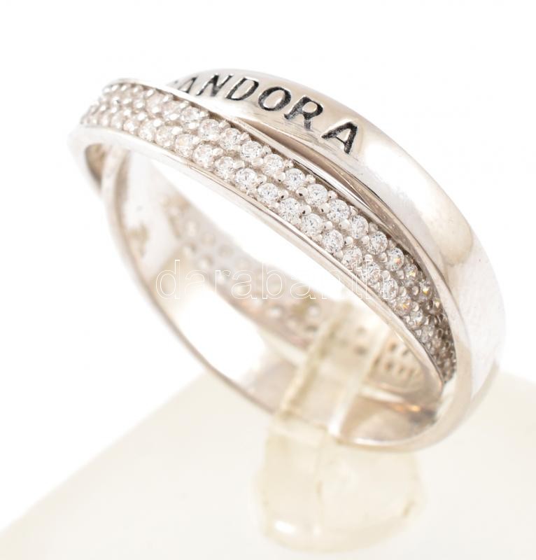 Ezüst(Ag) Pandora dupla gyűrű apró kövekkel, jelzett, méret: 58, brutt...