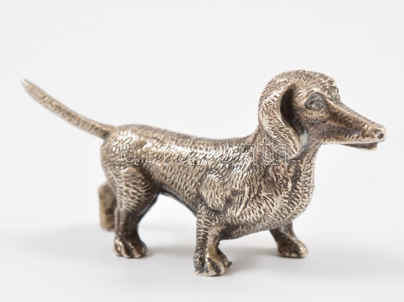 Ezüst(Ag) miniatűr tacskó, jelzés nélkül, h: 6 cm, nettó: 42,6 g