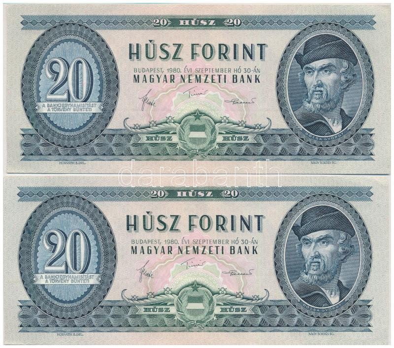 1980. 20Ft (2x) sorszámkövetők T:I,I-