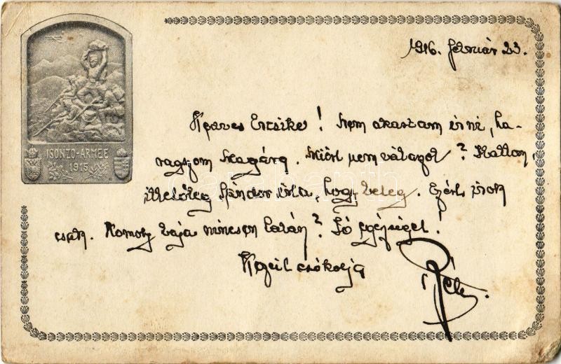 1916 Isonzo-Armee 1915 feliratú sapkajelvény képe tábori postai levele...
