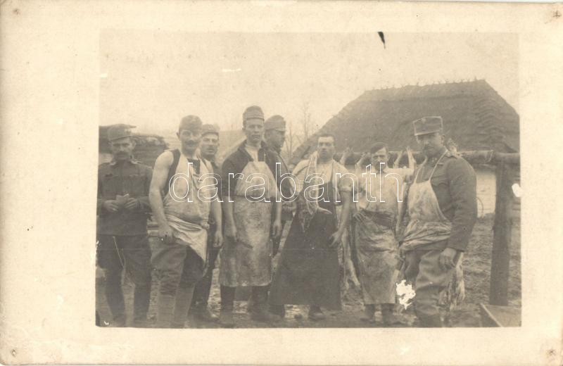 1917 Osztrák-magyar tábori konyha, hentesek húsfeldolgozás közben / WW... https://www.darabanth.com/en/345-Online-auction/345.0/Postcards/Militaria~2000063/1917-Osztrak-magyar-tabori-konyha-hentesek-husfeldolgozas-kozben-WWI-Austro-Hungarian-KuK~II1900377
