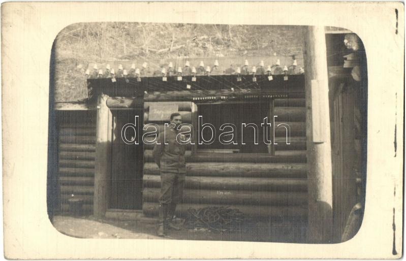 Description: A fronton, hegyek között kialakított osztrák-magyar katonai távírda és telefon központ / WWI Austro-Hungarian K.u.K. military telegraph and telephone station in the mountains. photo