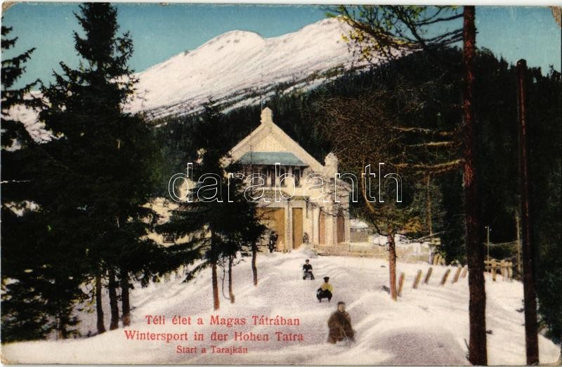 Tátra, Tatry; téli élet a Magas Tátrában, szánkózók, start a Tarajkán ...