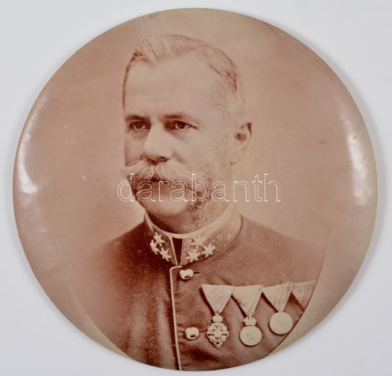 Katona kitüntetésekkel, fém alapra rögzített fotónyomat, d: 15 cm