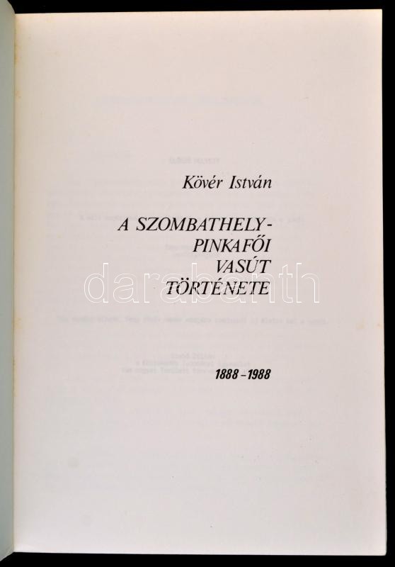 Kövér István: A Szombathely-Pinkfői vasút története. 1888-1988. Szombathely, 1989, MÁV szombathelyi Igazgatóság, 274 p. Kiadói papírkötés, jó állapotban. Megjelent 100 példányban. Nagyon ritka! / István Kövér: The story of the Szombathely (Steinamanger)-Pinkafő (Pinkafeld) railway. 1888-1988. Szombathely, 1989, MÁV szombathelyi Igazgatóság, 274 p. In Hungarian language. Paperbinding, in good condition. Published in 100 copies. Rare!