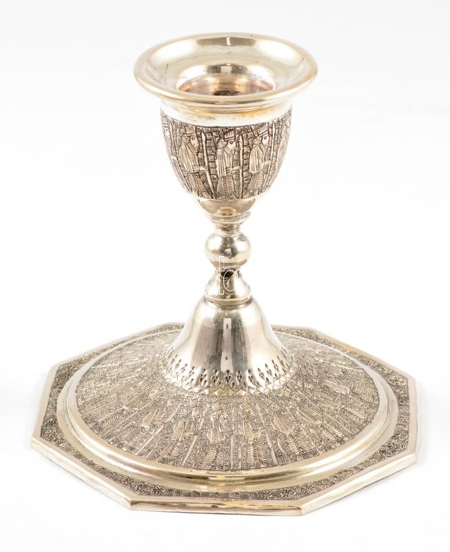 Ezüst gyertyatartó perzsa mintával, jelzett. 172g 11 cm