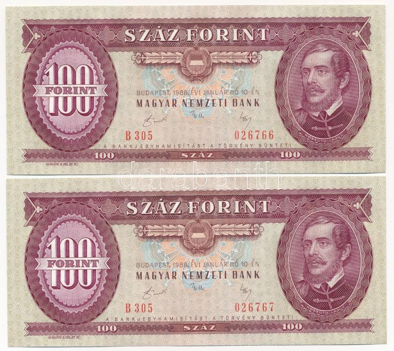 1989. 100Ft (5x) sorszámkövetők T:I- törés nélküli hajlás Adamo F36