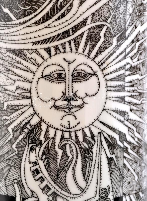 Hollóházi Szász Endre által tervezett mintával díszített porcelán váza, matricás, apró kopásnyomokkal, jelzett, m: 30 cm