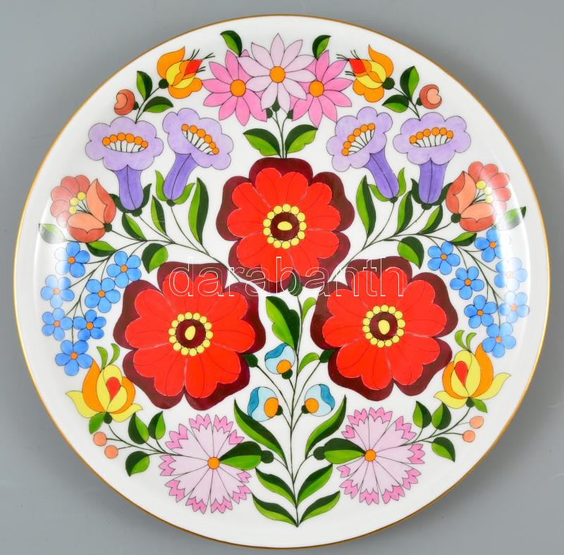 Kalocsai falitányér, kézzel festett, jelzett, apró kopásnyomokkal, d: ...