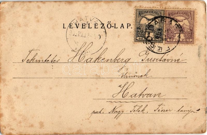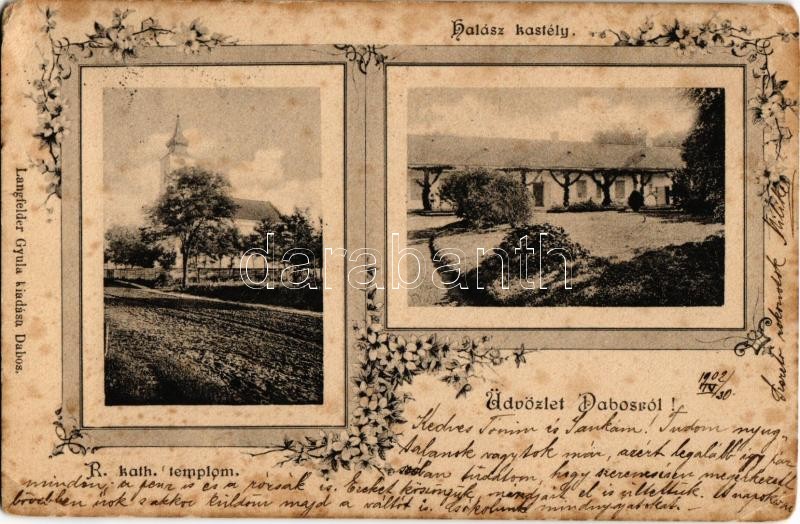 1902 Dabas, Halász kastély, Római katolikus templom. Kiadja Langfelder Gyula. Art Nouveau, floral (fl)