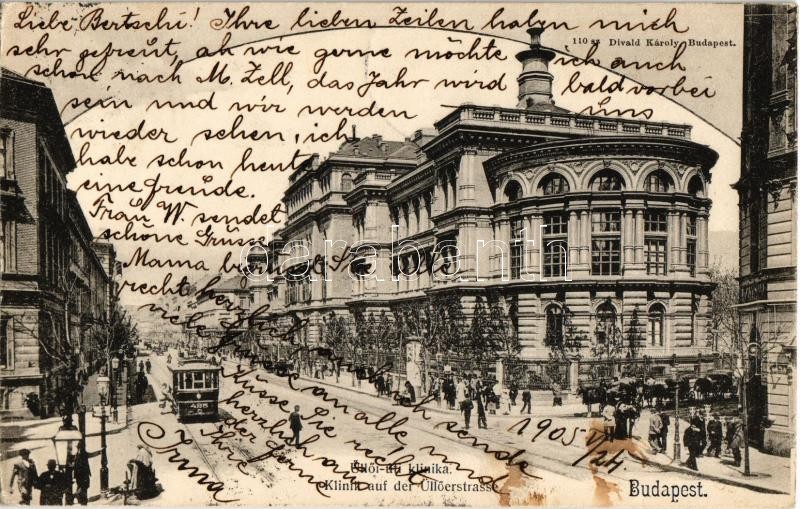 1905 Budapest IX. Üllői úti klinikák a Mária utca sarkán, villamos