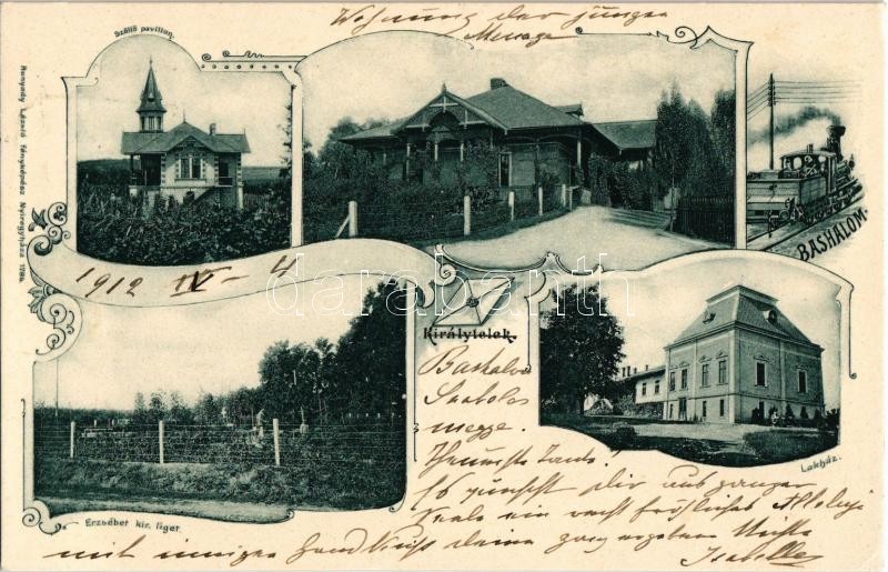 1912 Királytelek-Bashalom, gőzmozdony, Szőlő pavilon, Tiszti lakás, la...