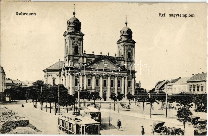https://www.darabanth.com/en/346-Online-auction/346.0/Postcards/Hungary~2000005/1916-Debrecen-Reformatus-nagytemplom-villamosok-hintok~II1965795