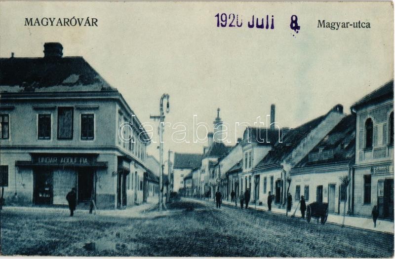 1920 Magyaróvár, Mosonmagyaróvár; Magyar utca, Ungár Adolf fia, Kiss István, Schmickl üzlete