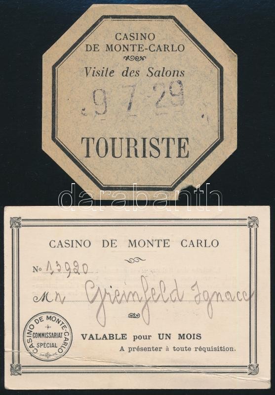 cca 1911 2 db belépő a Monte Carlo-i kaszinóba