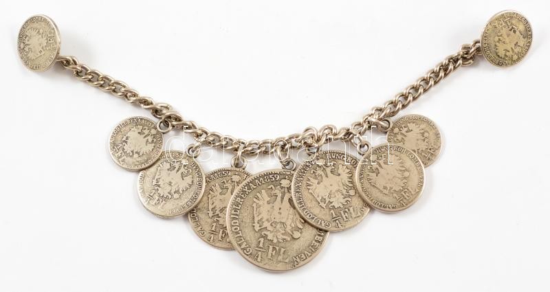 Érmékkel díszített ruhakapcsoló lánc, h: 14 cm