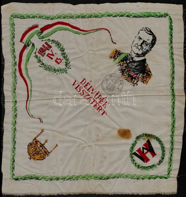 1941 "Délvidék visszatért" - emlékkendő, 30×30 cm