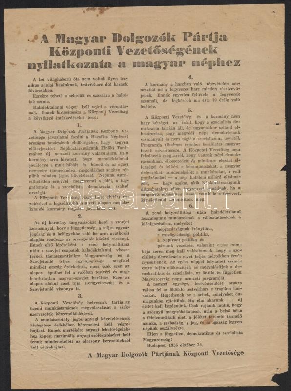 1956 október 26 Az MDP központi vezetőségének nyilatkozata a magyar néphez. 23x31 cm