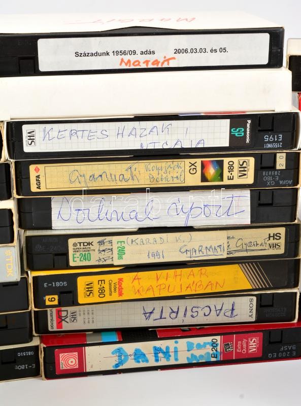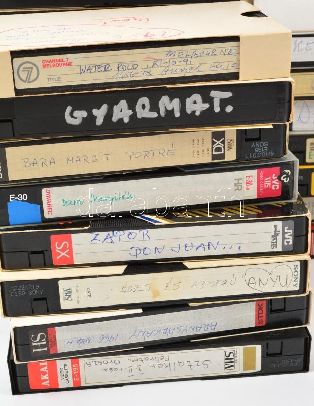 Description: Gyarmati Dezső (1927-2013) olimpiai bajnok vízilabdázó és Bara Margit (1928-2016) Kossuth- és Balázs Béla-díjas magyar színművésznő életéről szóló 40 db VHS kazetta. bara Margit filmek, interjúk, Gyarmati Dezső sportfilmek, interjúk, családi és közéleti szereplések.