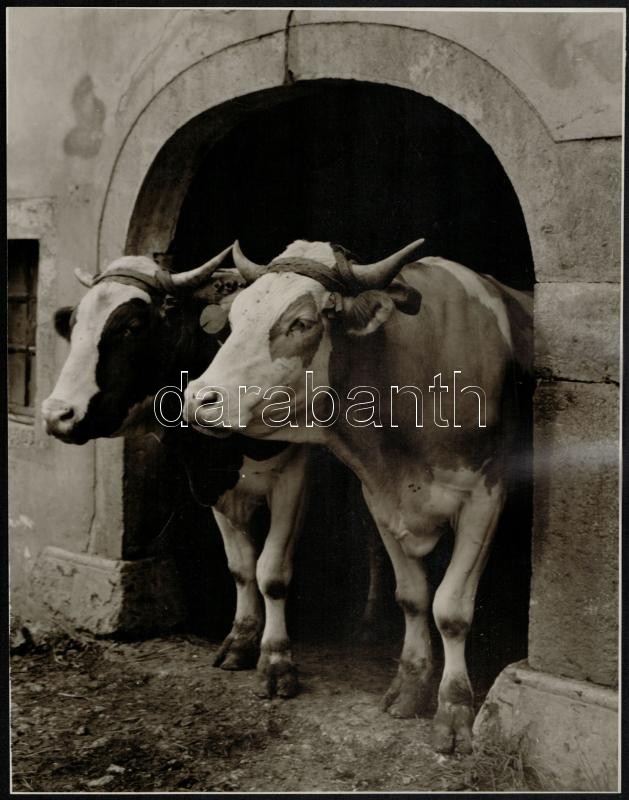 Két tehén a kapualjban, fotó, hátulján feliratozva, 22,5×29 cm