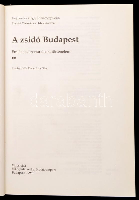 A zsidó Budapest. Emlékek, szertartások, történelem. Szerk.: Komoróczy... https://www.darabanth.com/en/347-Online-auction/347.0/Books/Books-Judaica~2000013/A-zsido-Budapest-Emlekek-szertartasok-tortenelem-Szerk-Komoroczy-Geza-1-2-kot-Bp-~II1942670