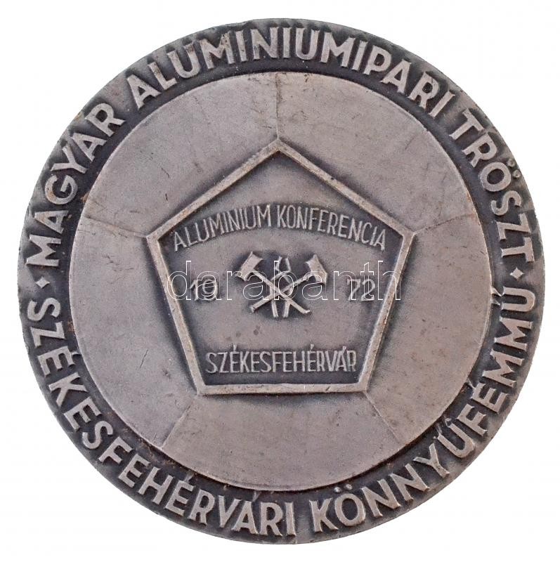 Description: 1972. "Országos Magyar Bányászati és Kohászati Egyesület / Magyar Alumíniumipari Tröszt - Székesfehérvári Könnyűfémmű - Alumínium Konferencia Székesfehérvár 1972" kétoldalas, ezüstözött fém emlékérem. Szign.: Kovács (60mm) T:2 kis ph.