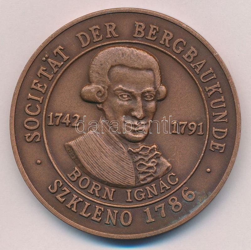 1986. "Országos Magyar Bányászati és Kohászati Egyesület - Közgyűlés Miskolc 1986 / Societät der Bergbaukunde Szkleno 1786 - Born Ignác 1742-1791" kétoldalas Br emlékérem (60mm) T1-