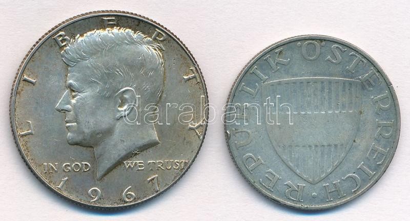Vegyes: Amerikai Egyesült Államok 1967. 1/2$ Ag "Kennedy" + Ausztria 1... https://www.darabanth.com/en/347-Online-auction/347.0/Numismatics/Worldwide-silver-and-metal-coins~1000012/Vegyes-Amerikai-Egyesult-Allamok-1967-12USD-Ag-Kennedy-plus-Ausztria-1958-10Sch-Ag-T1-2--Mixed~II1968036