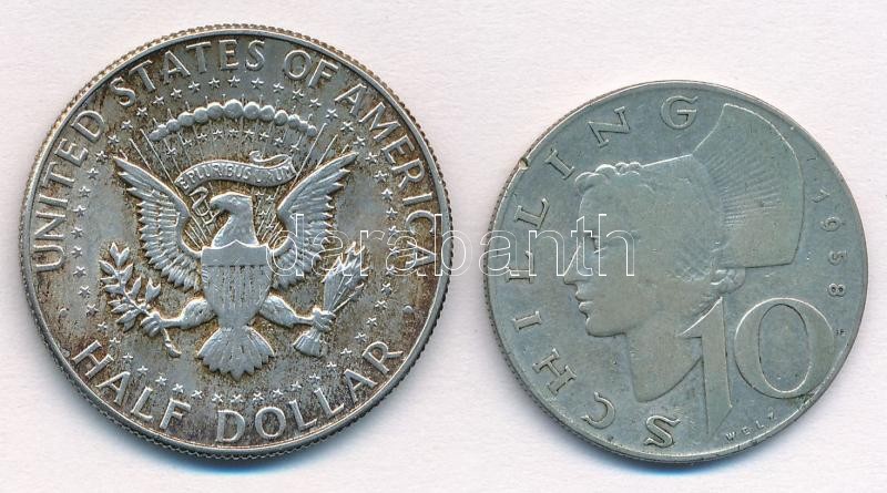 Description: Vegyes: Amerikai Egyesült Államok 1967. 1/2$ Ag "Kennedy" + Ausztria 1958. 10Sch Ag T:1-,2-