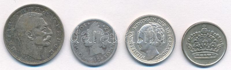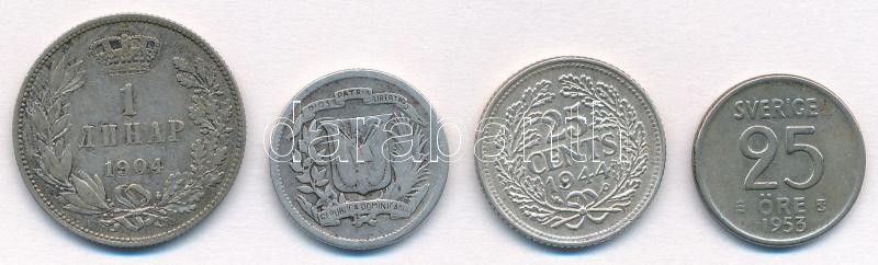 Mixed: Serbia 1904. 1 Dinar Ag "Peter I" + Dominica 1942. 10 Centavos Ag + Netherlands 1944. 25 Cents "Wilhelmina I" + Sweden 1953. 25 Öre Ag C:XF-F
