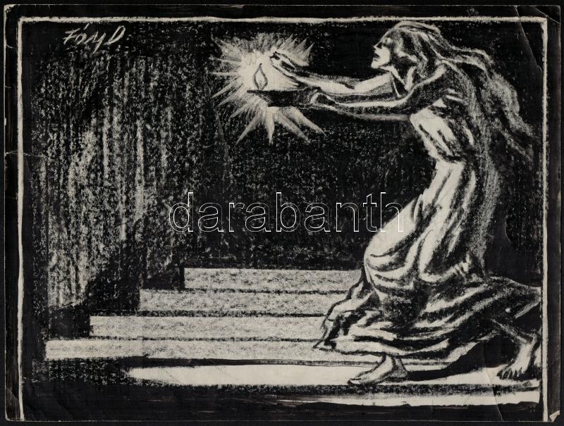 Fáy Dezső (1888-1954): Fényvivő. Szén, papír, jelzett, gyűrődéssel, 31...