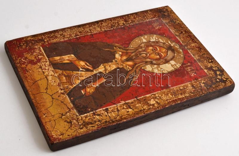 Szent Illés antikizált modern ikon, kézzel festett fa tábla, 37×25 cm