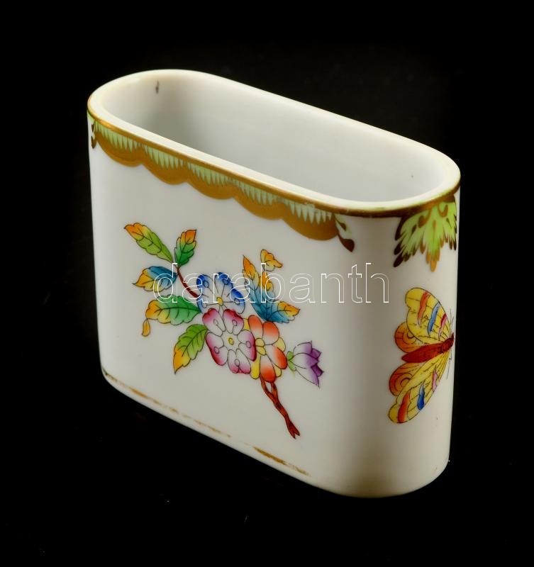 Herendi Viktória mintás fogpiszkálótartó, kézzel festett, jelzett, kopásnyomokkal, 6×8 cm