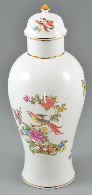 Hollóházi madaras-virág mintás porcelán fedeles váza, matricás, jelzet...