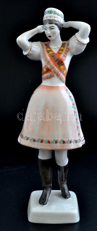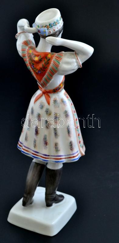 Hollóházi népviseletbe öltözött lány, kézzel festett, jelzett, apró kopásnyomokkal, m:28 cm