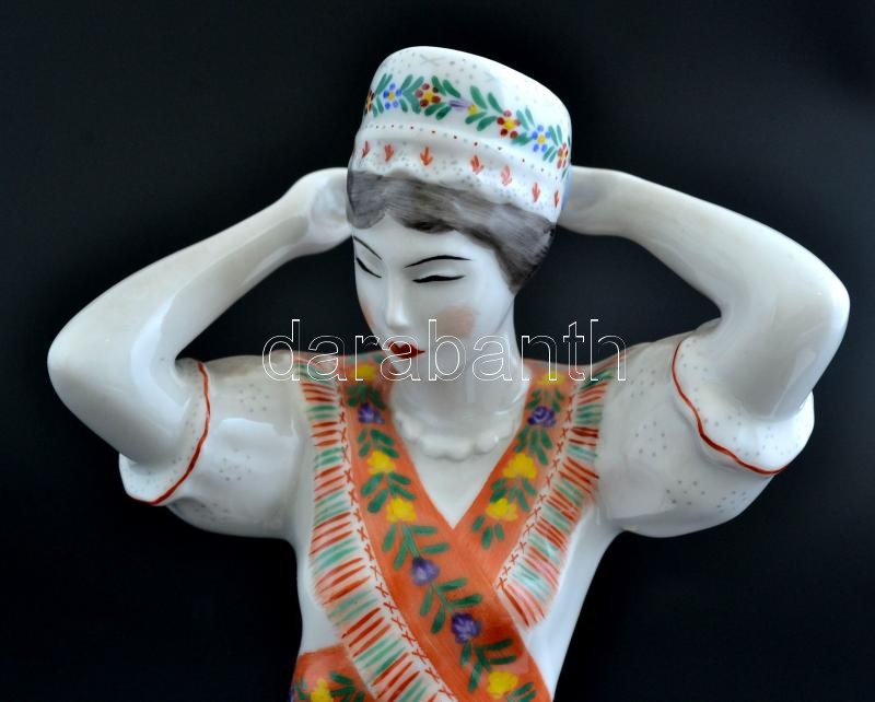 Hollóházi népviseletbe öltözött lány, kézzel festett, jelzett, apró ko...