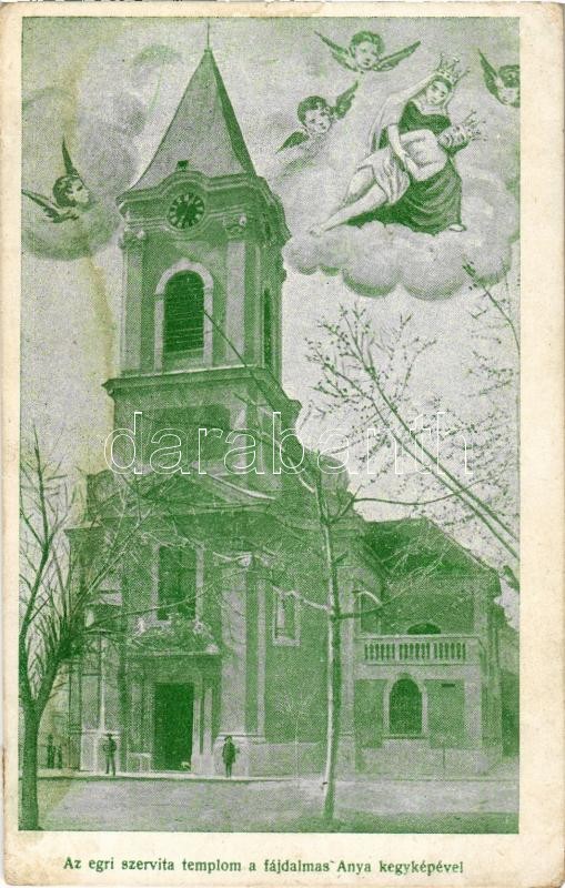 1929 Eger, Szervita templom a Fájdalmas Anya kegyképével. Kiadja Ifjabb Antalfy Pál (EK)