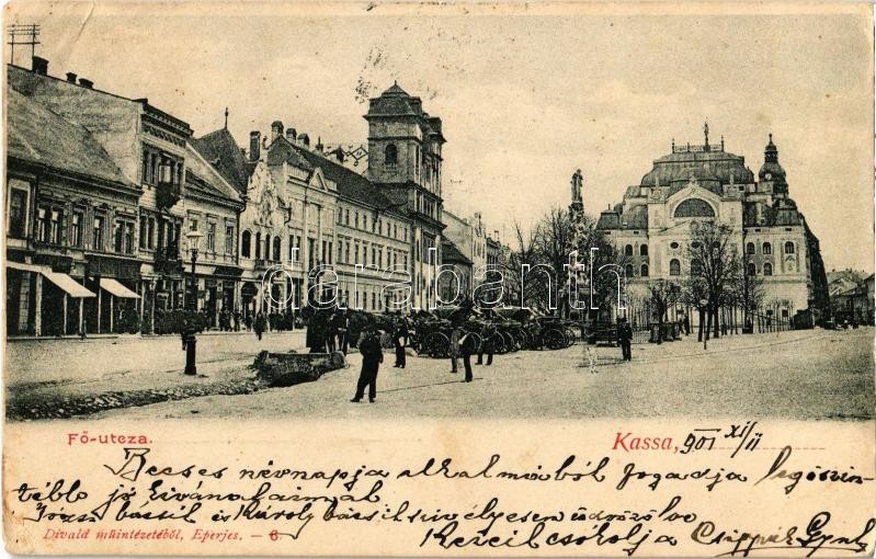 https://www.darabanth.com/en/347-Online-auction/347.0/Postcards/Slovakia~2500007/1901-Kassa-Kosice-Fo-utca-szekerek-Divald-main-street-shops-horse-carts-EK~II1973743