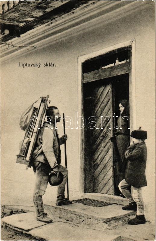 Liptószentmiklós, Liptovsky Mikulás; üvegfújó. P. Sochán, reklám a hátoldalon / sklár / glassmaker, folklore, advertisement on the backside