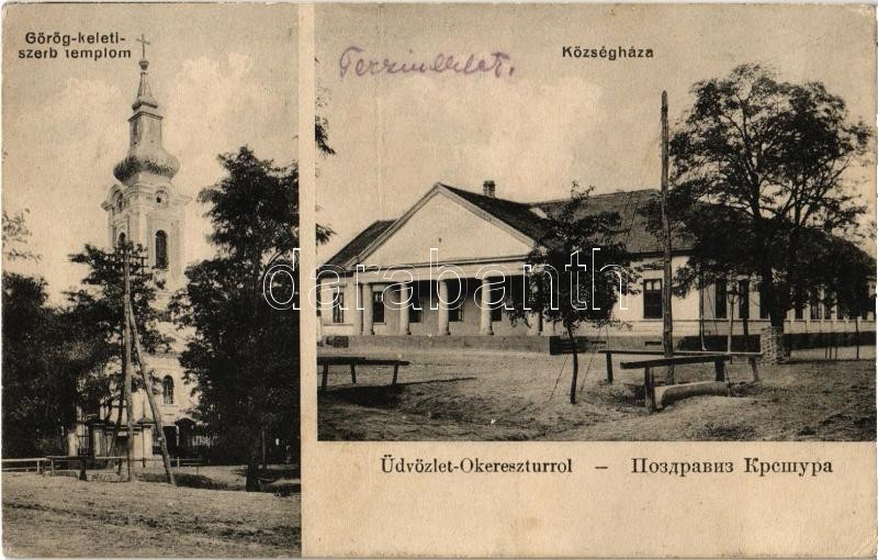 1914 Ókeresztúr, Szerbkeresztúr, Srpski Krstur; Görögkeleti szerb ortodox templom, Községháza / Serbian Orthodox church, town hall (r)
