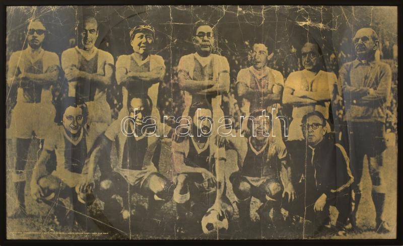 1976 Politikai világválogatott, ofszet, erősen gyűrőt, üvegezett keretben, 50×85 cm
